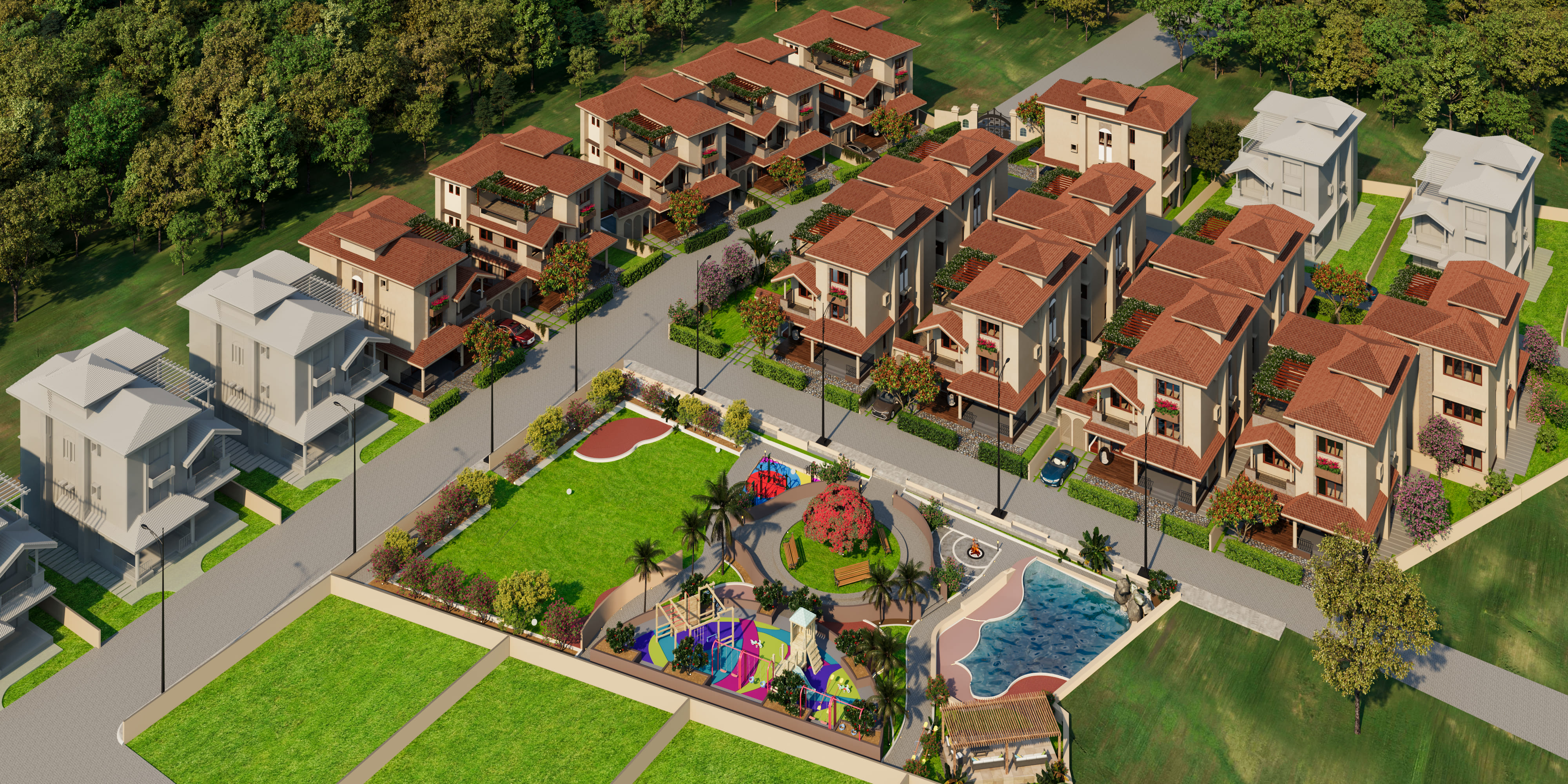 Estancia offers luxurious Spanish architecture inspired independent Villas with each having individual 7/12 extract. This exclusive gated villa community in Boisar East, Palghar brings together classic design elegance with modern living convenience.